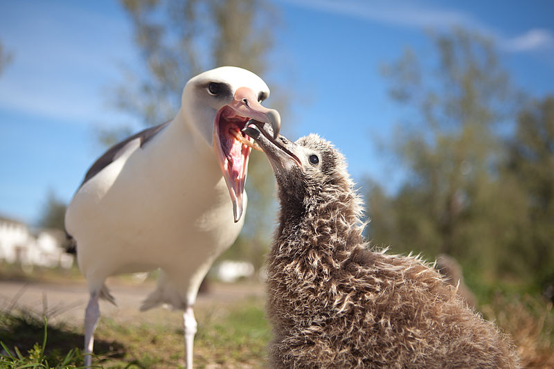 The Laysan albatross feeds predominantly on cephalopods, but will also eat fish, crustaceans, and other invertebrates.